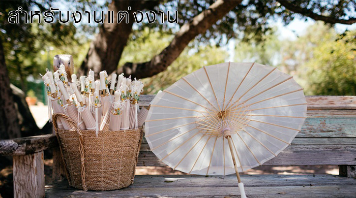 สำหรับงานแต่งงาน งานมงคลสมรสที่คู่รักหลายคู่ใฝ่ฝันถึงและอยากให้มีด้วยกันทั้งนั้น การจะเลือกสีร่มของชำร่วยให้เหมาะกับงานนี้ ก็ไม่ยากแต่อย่างใด เพราะส่วนมากงานแต่งงานก็มักจะเป็นธีมสีขาวบริสุทธ์อยู่แล้ว ดังนั้นสีร่มที่เหมาะกับการเป็นของชำร่วยเพื่อใช้แจกจ่ายภายในงานแต่งให้กับแขกหรือญาติที่มาร่วมงานก็คงจะหนีไม่พ้น ร่มสีขาว หรือร่มสีโทนอ่อน ร่มทูโทน หรือ ร่มทรีโทน อย่างแน่นอน โดยเน้นสีร่มไปทางโทนอ่อนที่ดูนุ่มละมุนละไม อ่อนหวาน เพื่อให้เข้ากับบรรยากาศงานนั้นเอง